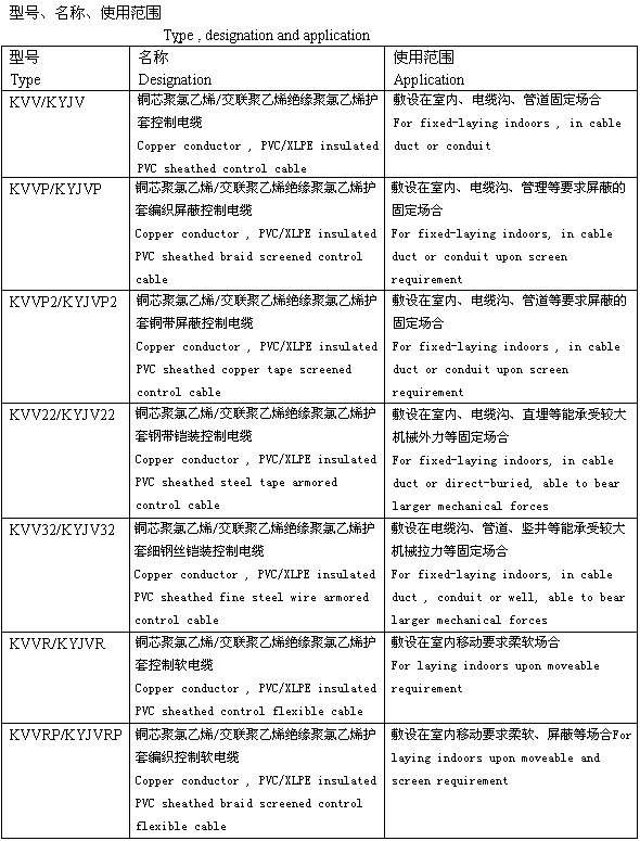 适用于额定电压450/750V及以下控制、信号、保护及测量系统接线之用。