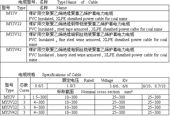 煤矿用额定电压10KV及以下铜芯交联聚乙烯绝缘固定敷设阻燃电力电缆