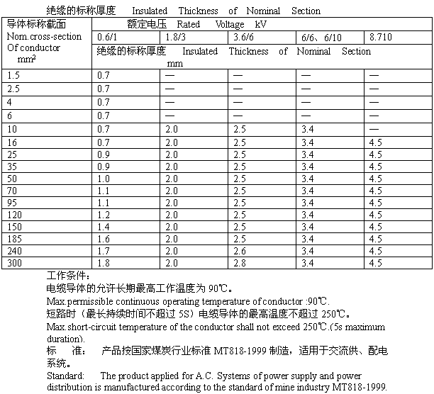 标 准: 产品按国家煤炭行业标准MT818-1999制造,适用于交流供、配电系统。